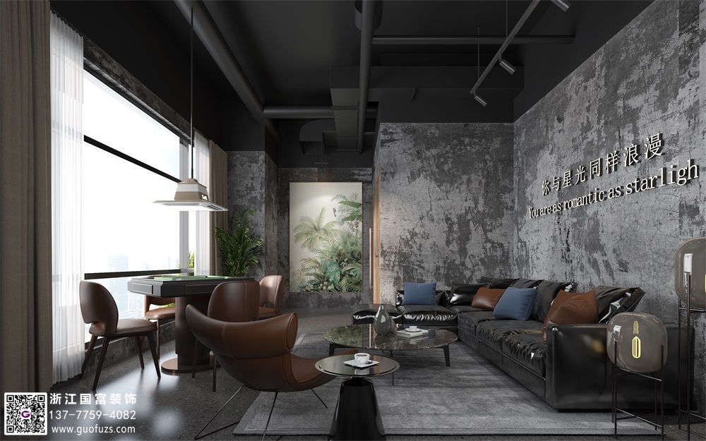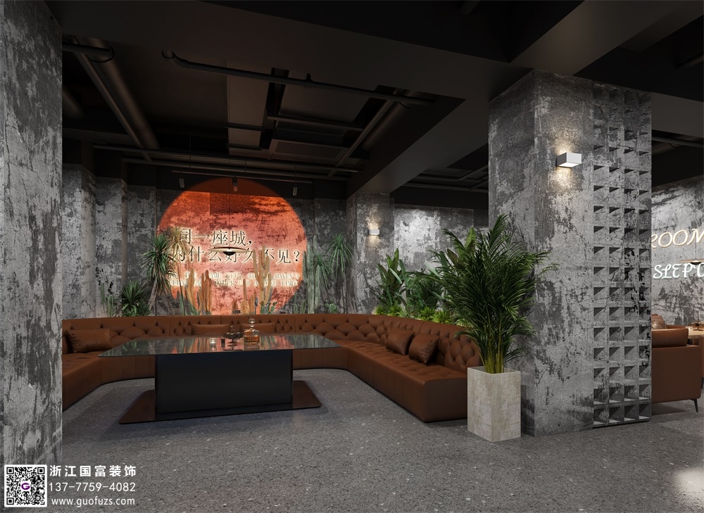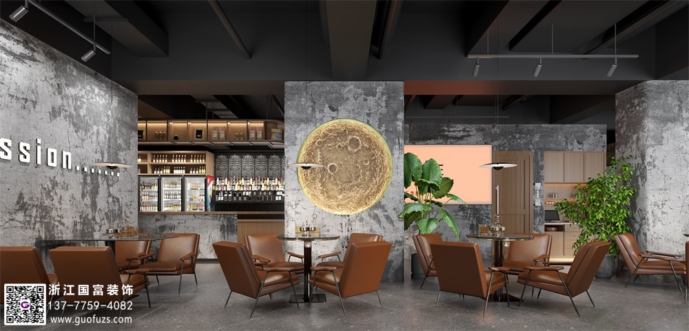 富陽水泥工業(yè)風(fēng)清吧設(shè)計裝修案例效果圖