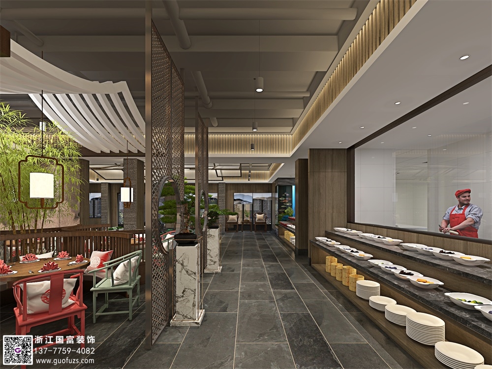 新中式自助餐廳裝修效果圖