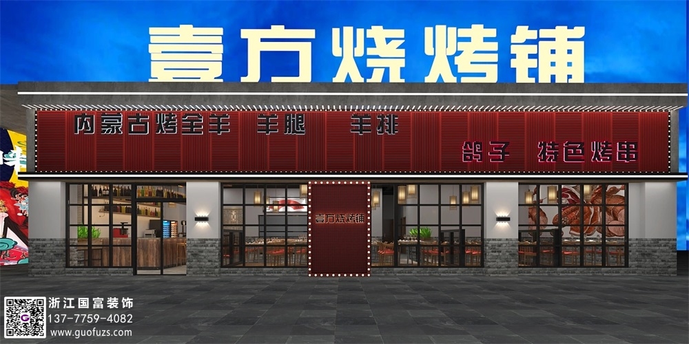 壹方燒烤鋪餐廳裝修設計案例效果圖