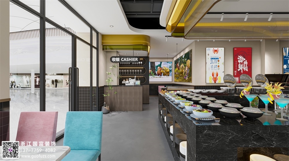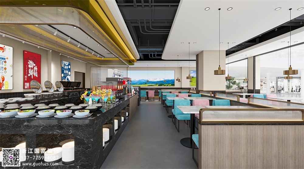 清新簡約風(fēng)自助餐廳裝修效果圖